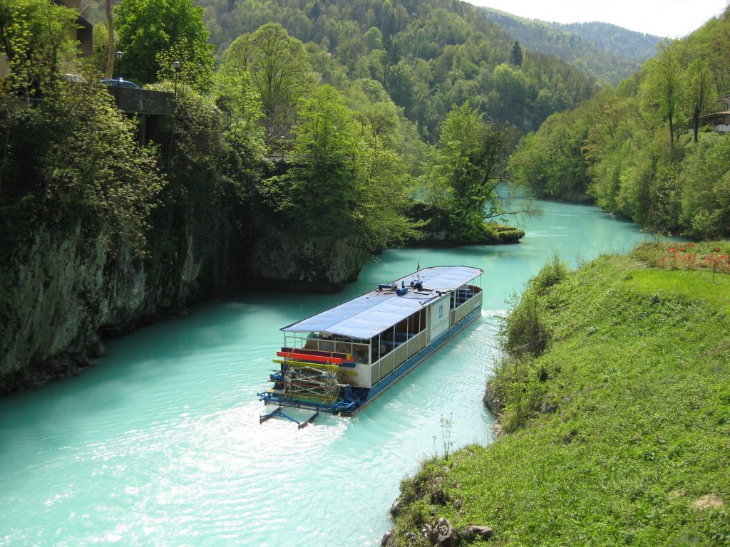 Proseguimento per Most na Soci (Slovenia), paese ubicato su un promontorio roccioso sovrastante la confluenza di due fiumi, l’Isonzo e l’Idrijca. A Most na Soci l’alveo fluviale si allarga e forma un lago artificiale limpidissimo e molto suggestivo. Saliremo a bordo di un battello che ci porterà i navigazione alla scoperta di questo fiume e della sua parte più bella immersa in una gola tra le montagne. Pranzo a bordo.